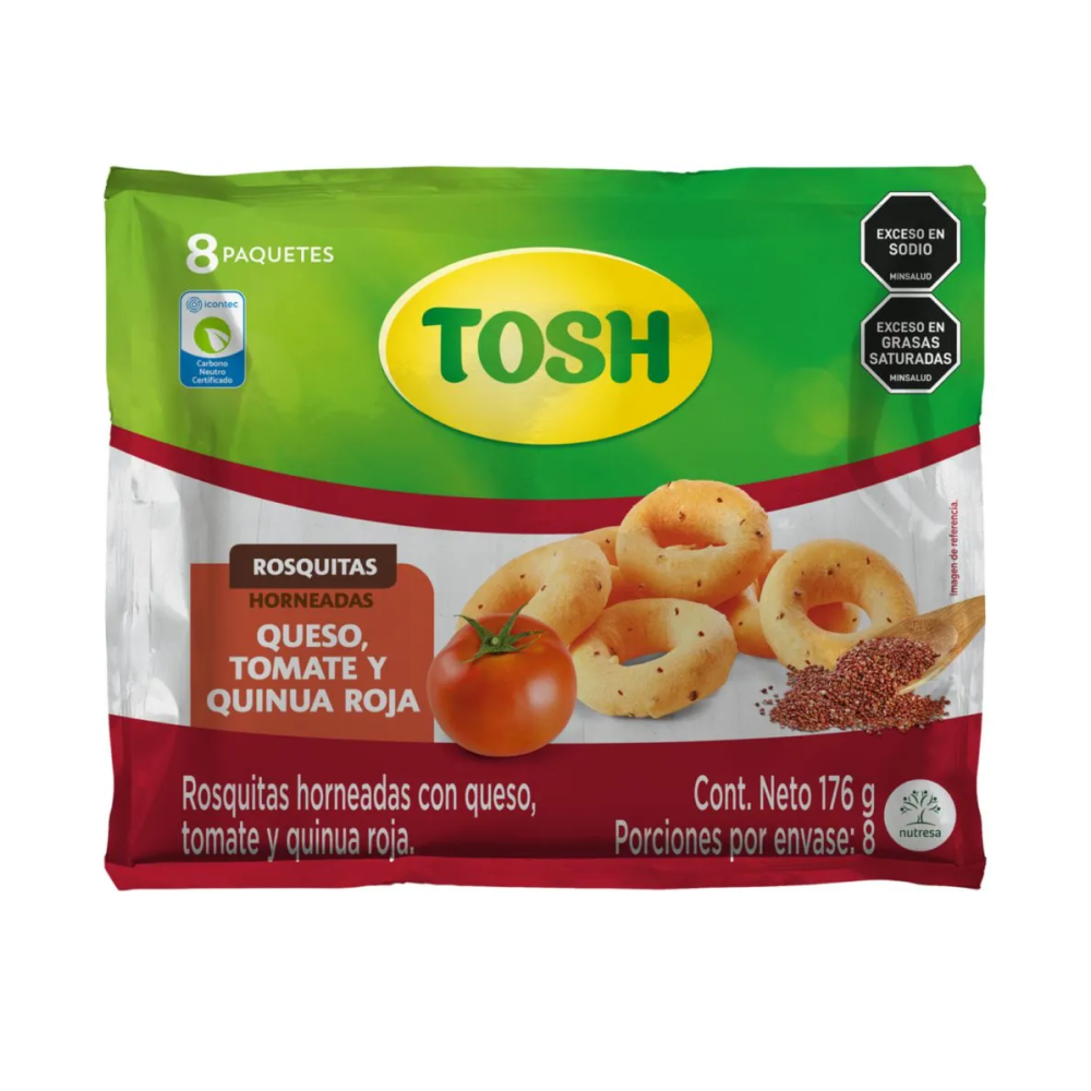 TOSH ROSQUITAS QUESO, TOMATE Y QUINUA ROJA DISPLAY X 6 UND X 22 GR (176 GR)